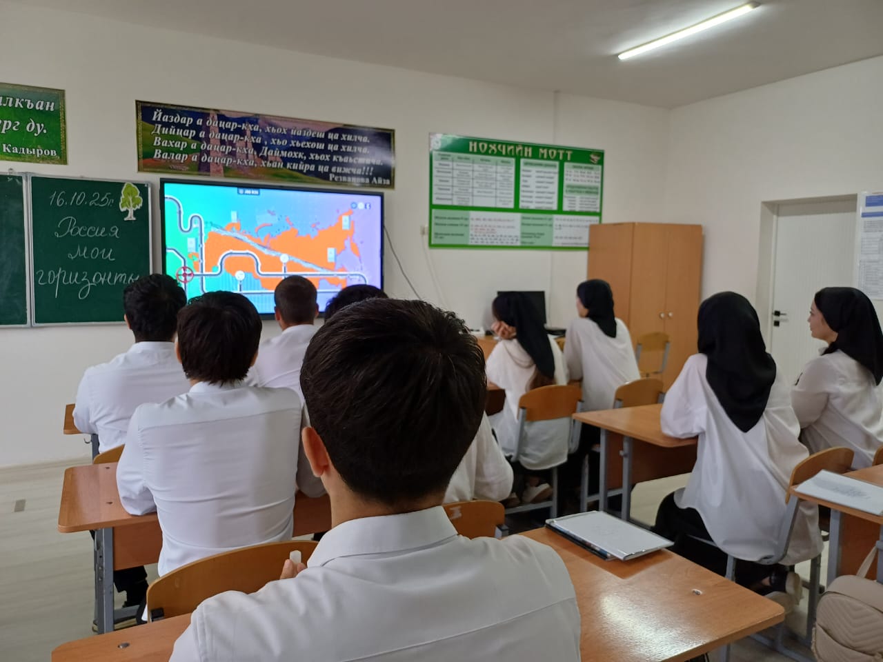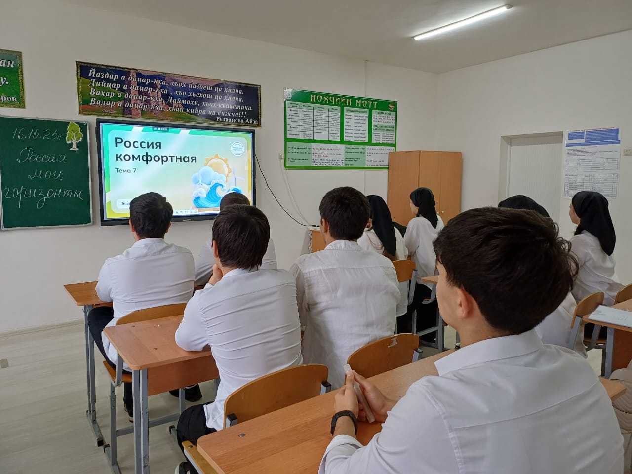 16 октября в 11 классе проведен урок на тему "Россия комфортная: энергетика". Учащиеся узнали, как устроена энергетическая отрасль и какую важную роль она играет в жизни россиян. Программа включала игру, беседу, просмотр видео, презентации и интерактивные задания.